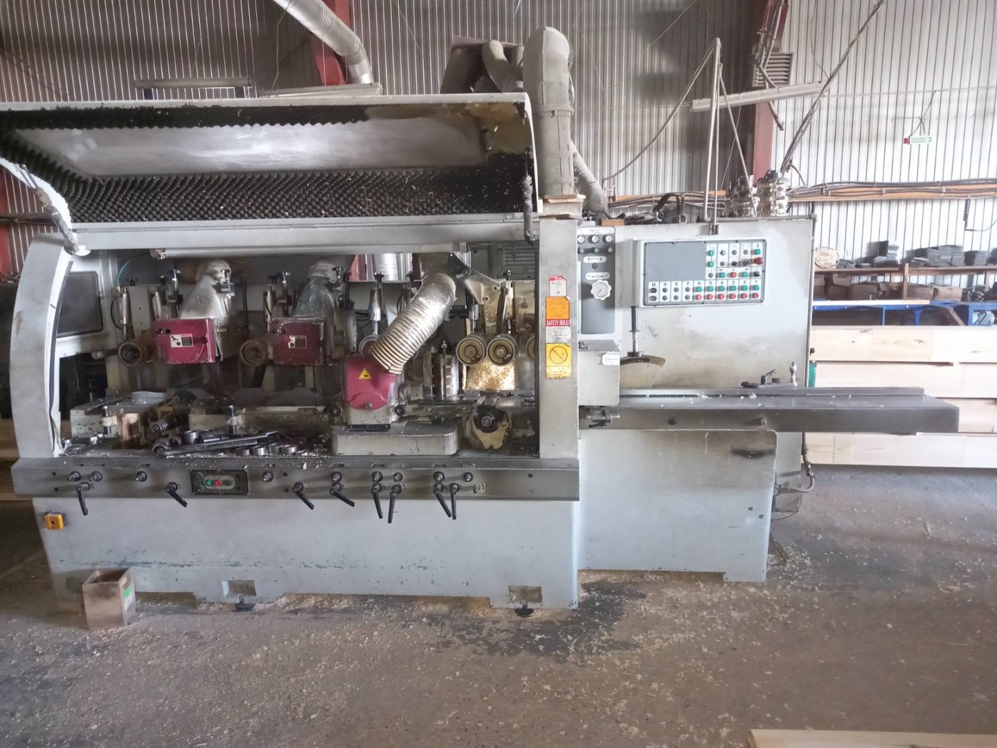 Станок предназначен для профильной и плоскостной обработки пиломатериала с целью получения строительного бруса, мебельного щита, а так же погонажных изделий: половая доска, вагонка, наличник, брусок, плинтус и др.