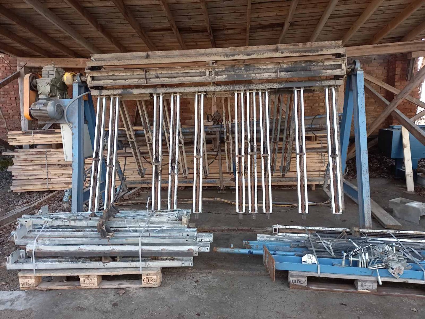 Веерная пресс-вайма 6 лепестков. Пневматика на фронтальном прижиме и механика (гайковёрт типа дрели) на прижиме сбоку. Толщина до 90 мм. Длина до 3 м. Производитель High Point. Проведена ревизия, вайма обслужена и полностью готова к отгрузке.